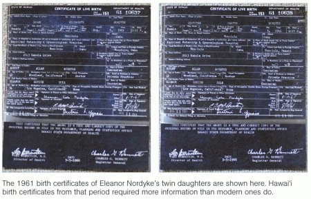 MRS. RONDEAU: One of the things that fascinated me about your research was the recent statement on your video that Janice Okubo’s Certification of Live Birth was used to create Obama’s. What made you come to that conclusion?