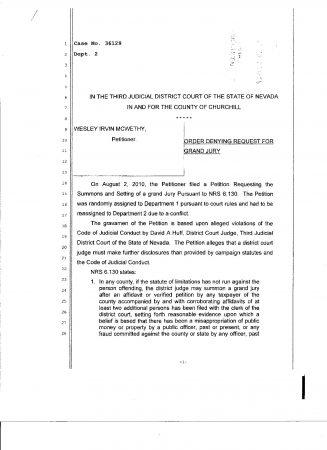 On August 2, 2010, the Petitioner filed a Petition Requesting the Summons and Setting of a grand Jury Pursuant to NRS 6.130. The Petition was randomly assigned to Department 1 pursuant to court rules and had to be reassigned to Department 2 due to a conflict.