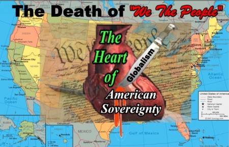 The heart of American sovereignty and the foundation of our freedom will be pierced by the poison-tipped spear of the governmental, financial and industrial might and treachery of very powerful men and organizations like Trilateral, Bilderberg and CFR.