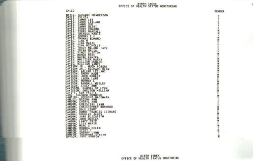 Birth Index No Date Range page 2 Continuation of Birth Index which contains Obama’s name but lacks the date header