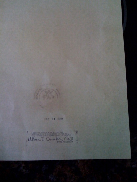 Photo of back of Alan Booth’s BC Photo of back side of Alan Booth’s birth certificate with registrar’s official stamp