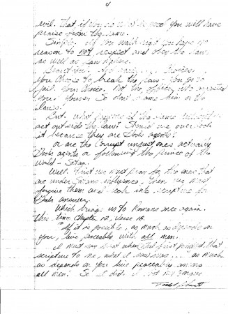 And it hit me. God was opening my mind and heart to what I was missing. I was doing my part, And Satans [sic] agents just kept on and on in their efforts to trample me by ministering to and being accepted by the law and government in the particular situation.