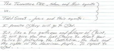 Prior to publishing the contents of Sweet’s letter, The Post & Email contacted the Knoxville FBI to ask whether or not an ongoing investigation would preclude doing so. Initially there was no response, but by the end of the second day after sending the inquiry, Knoxville did respond via email as follows:
