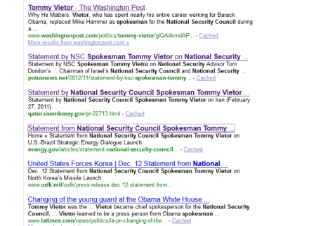 Update, February 25, 2013: The Post & Email contacted the Los Angeles Times reporter who broke the story of Vietor and others’ departure from the Obama regime as to when Vietor might have submitted his resignation, but she did not know the date.