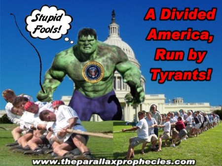 By implementing items 1, 2, 3 and 4 and institutionalizing them, we have set the stage for a perfect storm, where constituent groups fight with each other in a TUG-OF-WAR over who is going to get the most from their cushy relationships with government in exchange for their votes, while government eggs them on. In reality, with these four policies the government has played the people like the blind fools they are because the people believed that there was no end game to the “free stuff” they were getting ….. in exchange for their votes. Now, WE are the enemy of WE and government is the referee ….. with a whip. The government has a sweet deal and laughs all the way to the bank and we are none the wiser because we have become the people divided. Boy! We sure are smart!