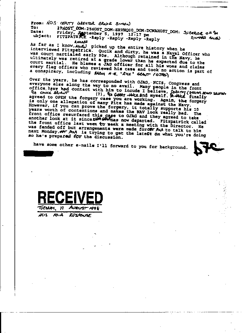 NCIS memo really bad 001 NCIS memo of September 5, 1997, admitting that if the forgery of Fitzpatrick’s name were proven, it would “make the Navy look really bad”