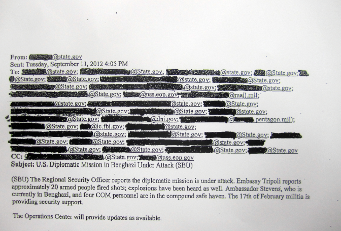 CBS News Benghazi emails Redacted emails of Executive Branch personnel exchanged shortly after it was discovered that the U.S. compound in Benghazi, Libya had been the target of a terrorist attack on September 11, 2012 (from CBS News)