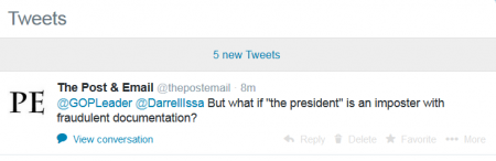 The Post & Email tweeted back to Cantor and House Oversight and Government Reform Committee Chairman Darrell Issa: