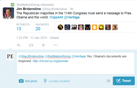 In response to the last tweet, The Post & Email responded, “Yes, Obama’s documents are forgeries! http://mcsoccp.org/joomla/ ,” referring to the investigation conducted by the Maricopa County, AZ Cold Case Posse which concluded that Obama’s long-form birth certificate and Selective Service registration form are “computer-generated forgeries.”