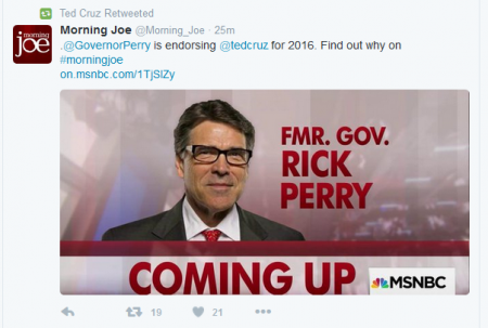 Various commentators and political figures appear unaffected by the question Trump and others have raised about Cruz’s constitutional eligibility, as former Texas Governor Rick Perry endorsed Cruz on Monday morning. Last week, radio host and commentator Glenn Beck announced that he was endorsing Cruz’s candidacy. L. Brent Bozell III, president of the Media Research Center, has also endorsed Cruz while making the case, along with 21 other “conservative” “leaders” writing at National Review Online (NRO), that Trump is not a true “conservative.”