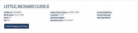 Using the TOMIS online search tool, The Post & Email found a Richard Cline Little at TTCC.