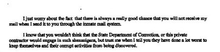 His typewritten letter claims that “there are absolutely no sense of professionalism from staff, no sense of real concern in the effort of Core Civic employees to try to run and operate a safe and secure facility, there is nothing about this place that has a sense of continuity or stability about it and how it is being operated…” [sic]