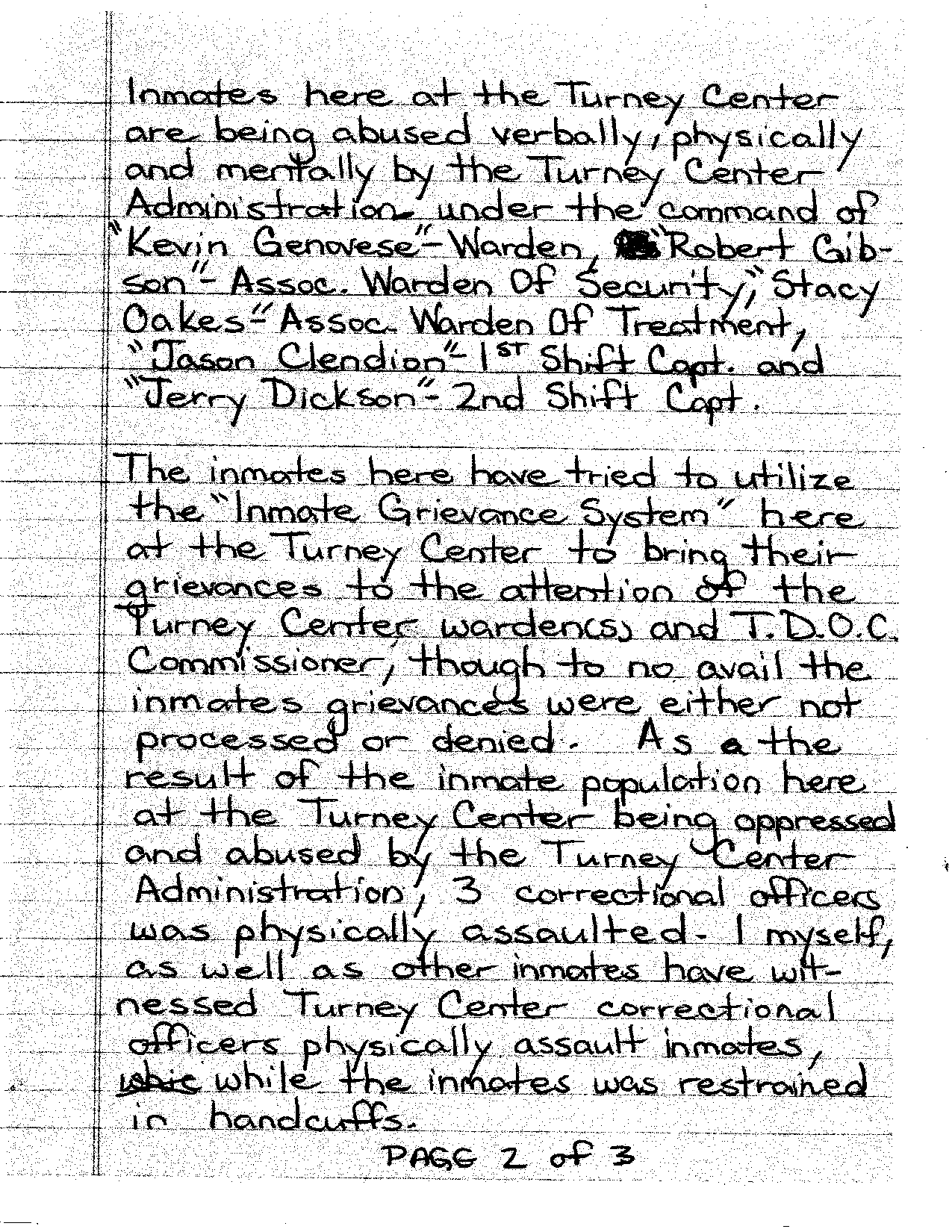 The message invoked a federal lawsuit, Shelton v. Ray et al, in which plaintiff and TCIX inmate Lorenzo Shelton accused five correction officers of “assault” and “excessive force” against him on March 5, 2010. The Post & Email was unable to find a final disposition on the case, which appears to have been reduced to one defendant by U.S. Magistrate Judge E. Clifton Knowles in March 2011.