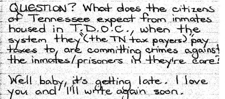 Last month, an MCCX inmate suggested that the Tennessee Department of Correction be renamed to “Tennessee Department of Corruption.”