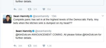 Spread the loveIf you are new here, you may want to subscribe to my free Email Newsletter alerts. Thanks for visiting!Welcome Back!OVER INTERNET ENTREPRENEUR CLAIMING TO HAVE EVIDENCE IN SETH RICH CASE by Sharon Rondeau (May 21, 2017) — Just before 10:00 PM EDT on Sunday night, Fox News host Sean Hannity tweeted an update … Continue reading Hannity: “Complete Panic at Highest Levels of Democratic Party”