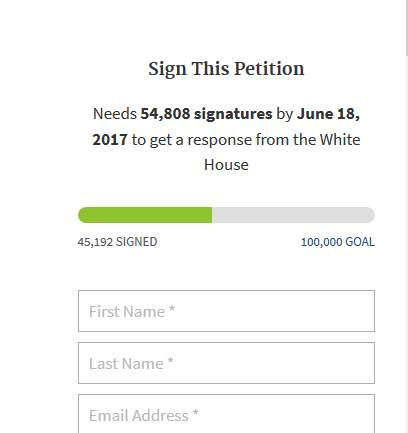16 DAYS REMAIN TO REACH 100,000 FOR WHITE HOUSE ACTION