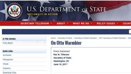 On behalf of the entire State Department and the United States government, I extend my condolences to the Warmbier family, and offer my prayers as they enter a time of grief no parent should ever know.