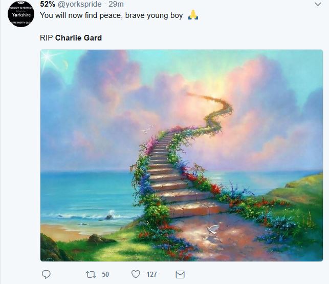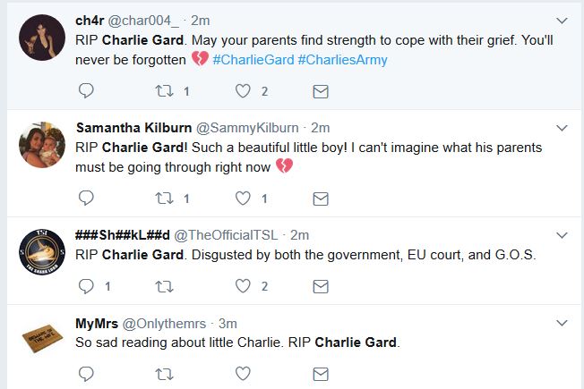 At 2:12 p.m. EDT, “#CharlieGard” is trending third on Twitter.