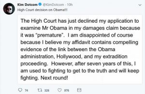 (Mar. 21, 2018) — Late Tuesday night in the Eastern time zone but 17 hours later in New Zealand, Internet entrepreneur and gamer Kim Dotcom tweeted that his country’s High Court denied his attorneys’ request to pose questions to former White House occupant Barack Hussein Obama while Obama visits New Zealand on a post-presidential visit this week.