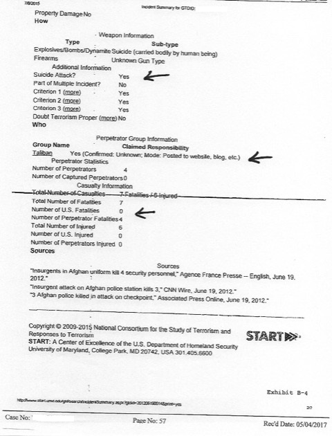 Additionally, the third page appearing below indicates that the number of “U.S. fatalities” from the attack is “0” while also maintaining that no U.S. person was injured.