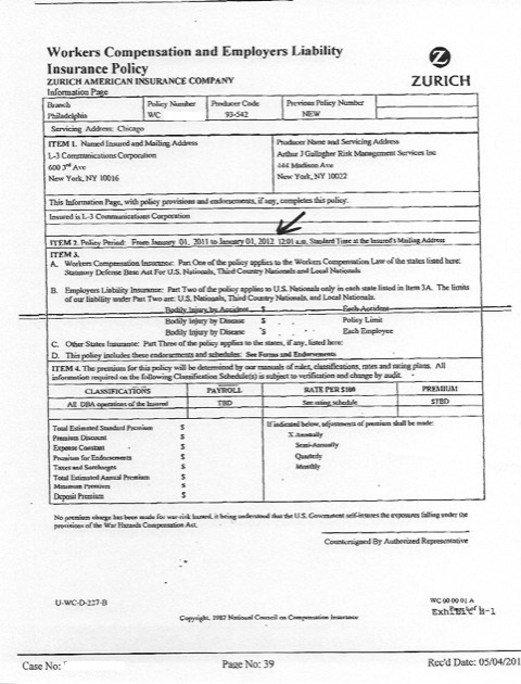 “How would anyone consider that document as pertinent?” Mrs. Boyle asked rhetorically. “It clearly states no U.S. citizens were killed or injured, yet this document is used as evidence of my husband’s death. And the most telling aspect is one of the requirements of entitlement being the injury or death must be the result of a war risk hazard further defined as the result of a ‘hostile force or person.’ The ‘accidental death’ of Tom Boyle would have precluded Zurich Insurance from receiving reimbursement on any level, hence the cover-up. My husband was worth more to L3 and Zurich if he were killed by an insurgent rather than an accident. And by refusing payouts to the widow, both entities and other underwriters saved even more money.”