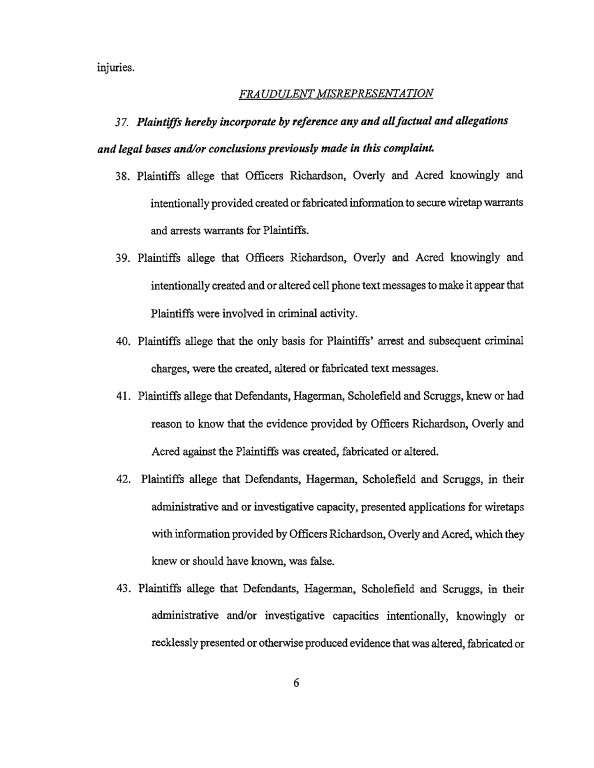 (Apr. 6, 2018) — On March 23, 2018, two former co-defendants from Shelby County, TN filed suit in federal court in response to their false arrest, detention and criminal charges based on altered evidence which they were able to prove.