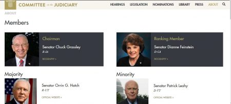 Ranking committee member Dianne Feinstein was seated next to Grassley; she did not interrupt as did her colleagues. At 10:01, however, she asked to speak, at which time Grassley asked if it were her “opening statement.”