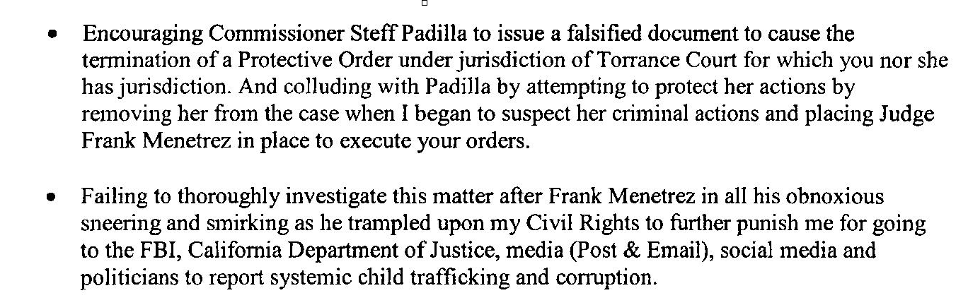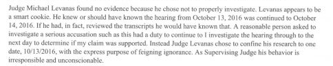 On March 9, 2017, Levanas responded to Robinson’s letter of complaint with the claim that after reviewing the transcripts of the “October 13, 2016” hearing over which Padilla presided, he found no mention of “points and authorities,” an integral part of the hearing and of Robinson’s complaint. Robinson, who was present in court on both October 13 and 14, 2016, said that Padilla requested written “points and authorities” briefs of both parties’ attorneys on the topic of whether or not Padilla had the authority to override Veasey’s December 10, 2015 restraining order.