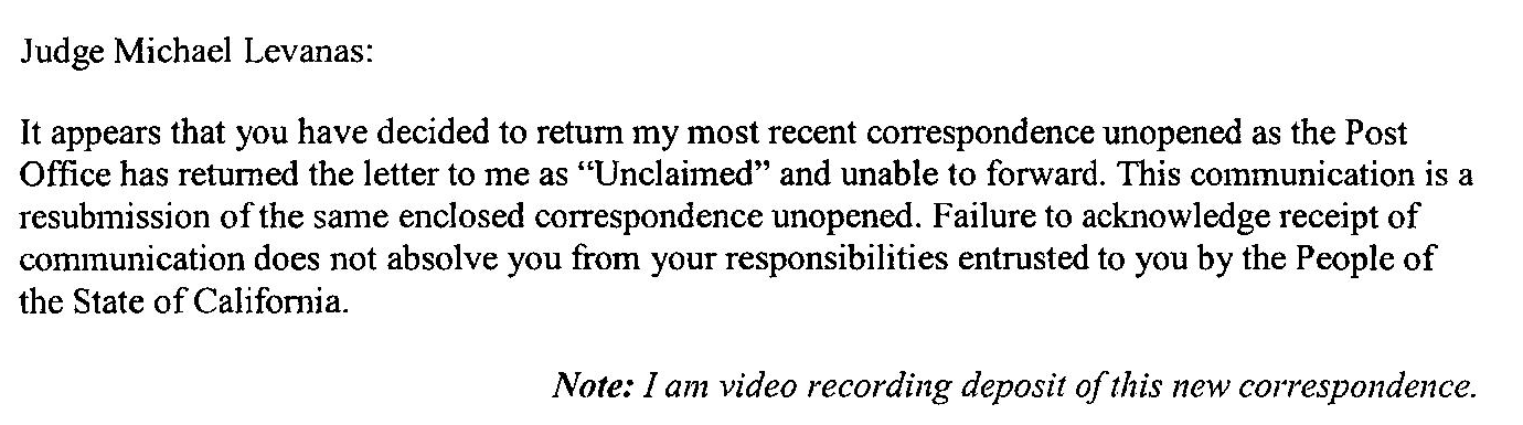 On November 12, Robinson re-mailed the letter, newly-dated November 11, to Levanas, with copies to this publication, the FBI, Becerra, and a law firm. In her opening paragraph, Robinson contended that “Failure to acknowledge receipt of communication does not absolve you from your responsibilities entrusted to you by the People of California.”