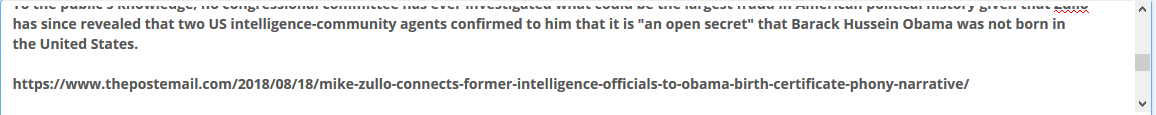 The point here is that the effort to expose and have Obama vetted has not died (by others and myself). Further, we know that Trump has other information and evidence from various sources, that Obama is a Usurper. When he forces this issue, it will be decisive.