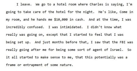 In closed-door testimony to members of two congressional committees last fall, Papadopoulos described the same incident, stating, “I was incredibly confused. I was intimidated. I didn’t know what really was going on, except that I started to feel that I was being set up…” (p. 121).