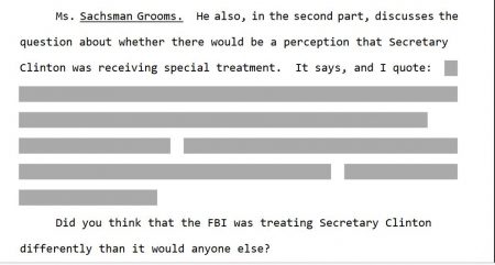 When Sachsman-Grooms first asked if there had been a “concern” that Clinton was “being treated differently than others,” Rybicki first responded, “Can you repeat that one more time?” (p. 83)