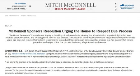 As referenced in the press release posted earlier Thursday by McConnell’s office, Graham chairs the Senate Judiciary Committee and has been outspoken about his belief that House Democrats’ investigation is “breaking critical precedents.”
