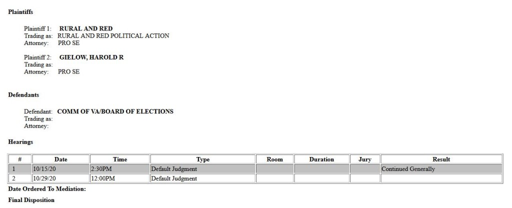 In his complaint, Gielow cited Virginia law § 24.2-103 detailing the responsibilities of the Virginia State Board of Elections. “The State Board, through the Department of Elections, shall supervise and coordinate the work of the county and city electoral boards and of the registrars to obtain uniformity in their practices and proceedings and legality and purity in all elections. Its supervision shall ensure that major risks to election integrity are (i) identified and assessed and (ii) addressed as necessary to promote election uniformity, legality, and purity. It shall make rules and regulations and issue instructions and provide information consistent with the election laws to the electoral boards and registrars to promote the proper administration of election laws,” the statute begins.