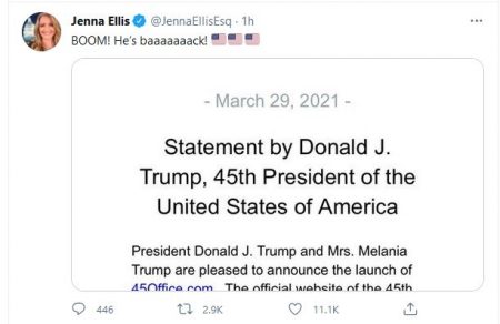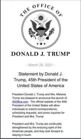 (Mar. 29, 2021) — The Office of 45th President of the United States Donald J. Trump has launched a communications and activism initiative “committed to preserving the magnificent legacy of the Trump Administration, while at the same time advancing the America First agenda,” it said in a press release on Monday.