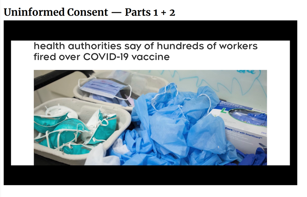 Parts 1 and 2, released together, focus on Canadian, Australian and American health officials’ response to the COVID-19 “pandemic” by mandating vaccination with the products which came to market at record speed under the United States’ 2020 “Operation Warp Speed.”