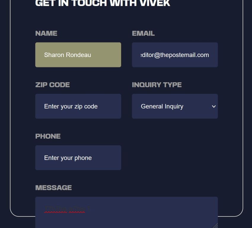 At 12:06 p.m. Wednesday, this writer attempted to contact Ramaswamy by completing the form on his website, but the “Message” field would not accept any text.