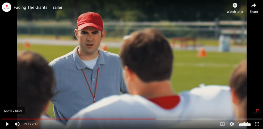 The coach turned to God, praying for help in all aspects of his life and taking that message to his players. The coach was eventually given a brand new pickup by an anonymous donor, his team responded to his message of faith, he was given a pay raise, his wife conceived, and the team defeated the three-time champions for the state championship that season. His message to the team was that they would praise God when they won AND when they lost. After starting the season 0-3 they ran off an unbeaten string, ending in winning the championship over a team bigger, stronger and faster with more players. The Giants had 85 players compared to the Eagles’ 32 and could therefore keep bringing fresh players in.