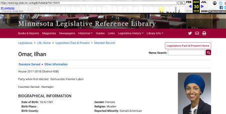 “Two days after I published that video on social media,” Kern told us, “she called the Minnesota Legislative Reference Library and asked that her birth year be changed from 1981 to 1982. She also did it on her congressional page and Wikipedia. To me, that should raise a red flag. I’m a patriot; I believe that we should not have foreign nationals sitting in our Congress. It’s very clear that the qualifications to run – Article I, Section 2, clause 2 – you must be ‘seven years a citizen.’”
