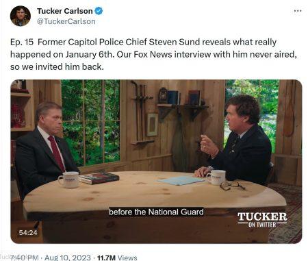 (Aug. 13, 2023) — Recently, Tucker Carlson scored an interview with Steven Sund, former Chief of the U.S. Capitol Police. If you do nothing else today, watch the entire 55-minute interview, as it will help you understand the title of this post.