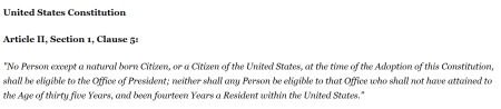 First, the quip seems to confirm that the retired law professor thinks the 14th Amendment – passed after “the North won the Civil War” to ensure that black Americans were accorded the same citizenship rights as all other native-born citizens…, but not mentioning any intent to alter the separate eligibility restrictions of Art. 2, § 1, Cl. 5 – controls the issue.