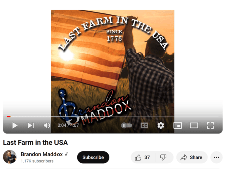 Brandon Maddox’ original song, “Last Farm in America” resonates beyond farmland. The heartfelt words apply to all Americans who have worked hard to earn and preserve their property.