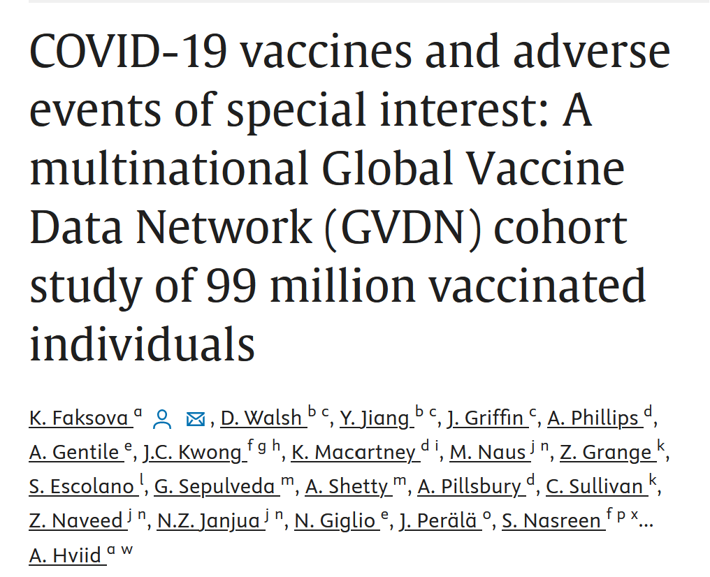 “Expected rates (of adverse events) were obtained by participating sites using pre-COVID-19 vaccination healthcare data stratified by age and sex. Observed rates were reported from the same healthcare datasets since COVID-19 vaccination program rollout. AESI occurring up to 42 days following vaccination with mRNA (BNT162b2 and mRNA-1273) and adenovirus-vector (ChAdOx1) vaccines were included in the primary analysis.”