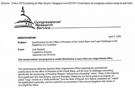 As a consequence, the CRS memorandum – distributed to all members of Congress as an example of the “best thinking” on the issue – made it appear that the son of a foreign father could nonetheless be deemed to be a nbC eligible to the presidency. No doubt coincidentally, that linguistically altered conclusion conveniently fit the situation of one Barack Hussein Obama II in 1961, when he was born, and in 2009, during his first term as president.