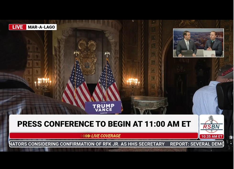 (Jan. 7, 2025) — President-Elect Donald J. Trump will speak at a press conference Tuesday morning beginning at 11:00 a.m. EST, RSBN reported.