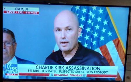 The second speaker, an FBI agent, extended his condolences to Kirk’s family and those who witnessed the horrific event. As he spoke at 6:30 p.m., Fox News reported that FBI Director Kash Patel has said the “suspected shooter is in custody.”