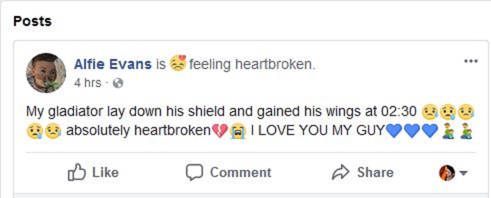 Posted inWorld Alfie Evans Has Passed Away by Sharon RondeauSaturday, April 28, 2018Saturday, April 28, 2018