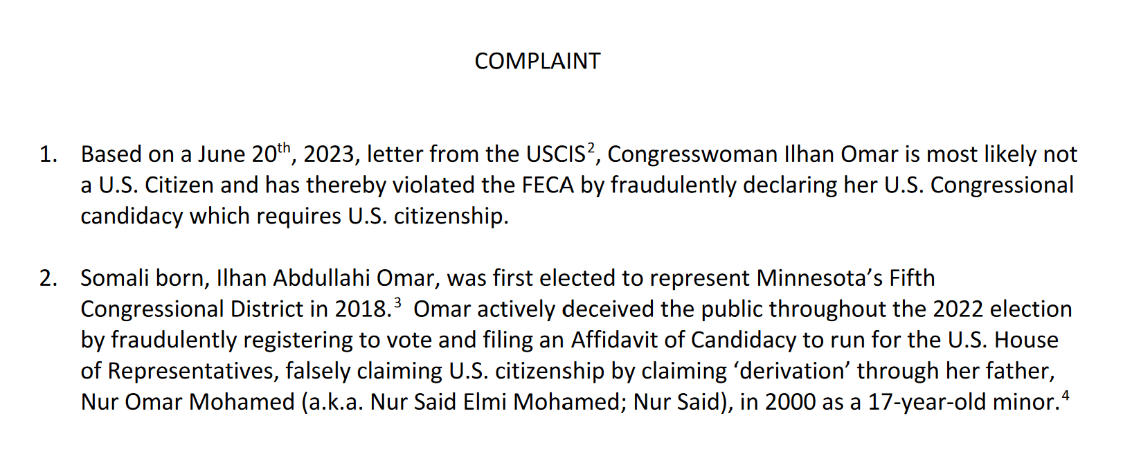 by Sharon Rondeau (Sep. 27, 2023) — On September 18, 2023, former U.S. House Democrat primary candidate AJ Kern filed a complaint and “request for advisory opinion” with the Federal Elections Commission (FEC) alleging Minnesota’s fifth-district congresswoman, Ilhan Omar, “deceived the public by filing a false affidavit of candidacy claiming to be a United States […]