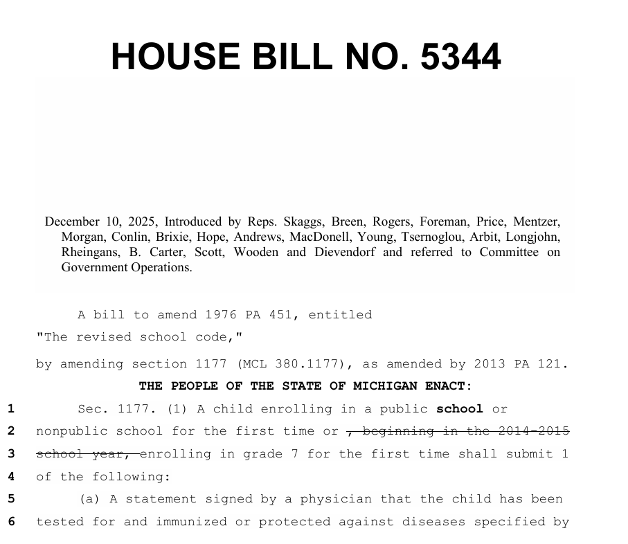 by James Lyons-Weiler, PhD, Popular Rationalism, ©2025 2025-HIB-5344.pdf (Dec. 16, 2025) — A Coordinated Offensive Against Parent Rights Disguised as Transparency In December 2025, the Michigan House of Representatives introduced a tightly coordinated package of eleven bills (HB 5344 through HB 5354) that collectively represent the most aggressive maneuver against vaccine exemptions in the state’s modern legislative […]