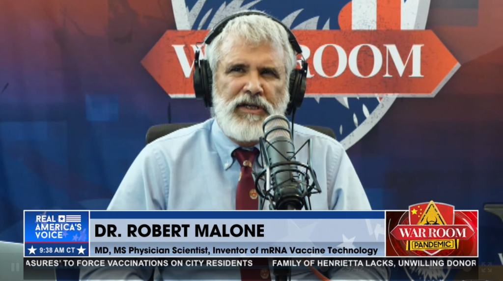 by Sharon Rondeau (Jul. 31, 2021) — Dr. Robert Malone, originator of mRNA vaccines, is speaking Saturday morning with former White House Trade Adviser Peter Navarro and Stephen K. Bannon, host of “War Room,” about the risks of coronavirus vaccines. The broadcast can be heard live here: https://americasvoice.news/ Malone previously spoke with Bannon on Wednesday […]